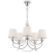 Металлическое основание - дополнено скульптурным литым стеклом в трех оттенках: прозрачном, дымчатом и пудрово-розовом. Хлопковый абажур белого цвета. Цоколь Е27.