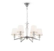 Арматура из металла. Оттенки – хром и латунь. Стеклянные плафоны в двух цветовых решениях: белый глянец и хром с зеркальным эффектом. Оригинальная форма плафонов «песочные часы», двунаправленный световой поток. Широкий ассортимент. Источник света – лампа с цоколем E27.