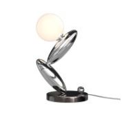 Арматура из алюминия черного цвета, контрастирует белой пластиной диаметром 420мм или 600мм. Силиконовый рассеиватель скрывает LED-источник света с температурой 3000К. В серии представлены светильники двух поколений: в первом источник светит только вверх; во втором источник светит вверх и вниз, что позволяет подсветить рабочую поверхность. Также светильники второго поколения дополнительно имеют функцию диммирования. Высота подвесных светильников регулируется, максимальная длина провода - 3 метра.